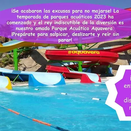 Den strand-Apartamento Exotico En Primera Linea De Vera-Playa! ferielejlighed ligger ved siden af Vera-Playa og er udstyret med en udendørs pool, en solterrasse og et vandland. Gæsterne kan besøge Parque Acuático Aquavera, 1,4 km derfra eller El Playazo, 2,4 km fra indkvarteringen.